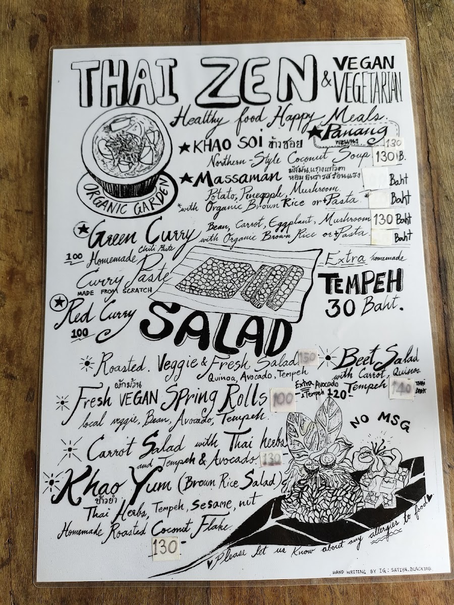 Thai-Zen Organic Farm And Cafe Menu